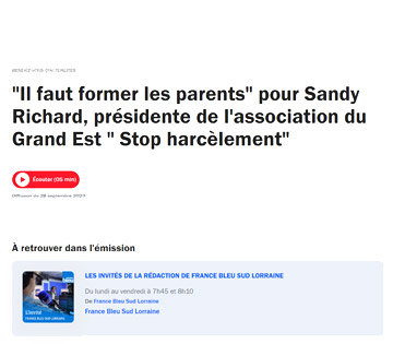 SANDY RICHARD : Présidente et fondatrice de l'association PLUS JAMAIS ÇA , STOP AU HARCÈLEMENT e-mail : contact@stopauharcelement.org